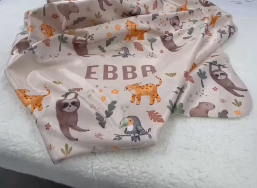 Nydelig varmt og mykt, rett og slett en gedigen koseklut. Ungene elsker det! Dette er en perfekt gave! Teppet måler 150x100 cm. Oversiden er myk og glatt, det er denne siden som er trykket. Undersiden er hvit og har den deilige teddyeffekten. En unik gave!