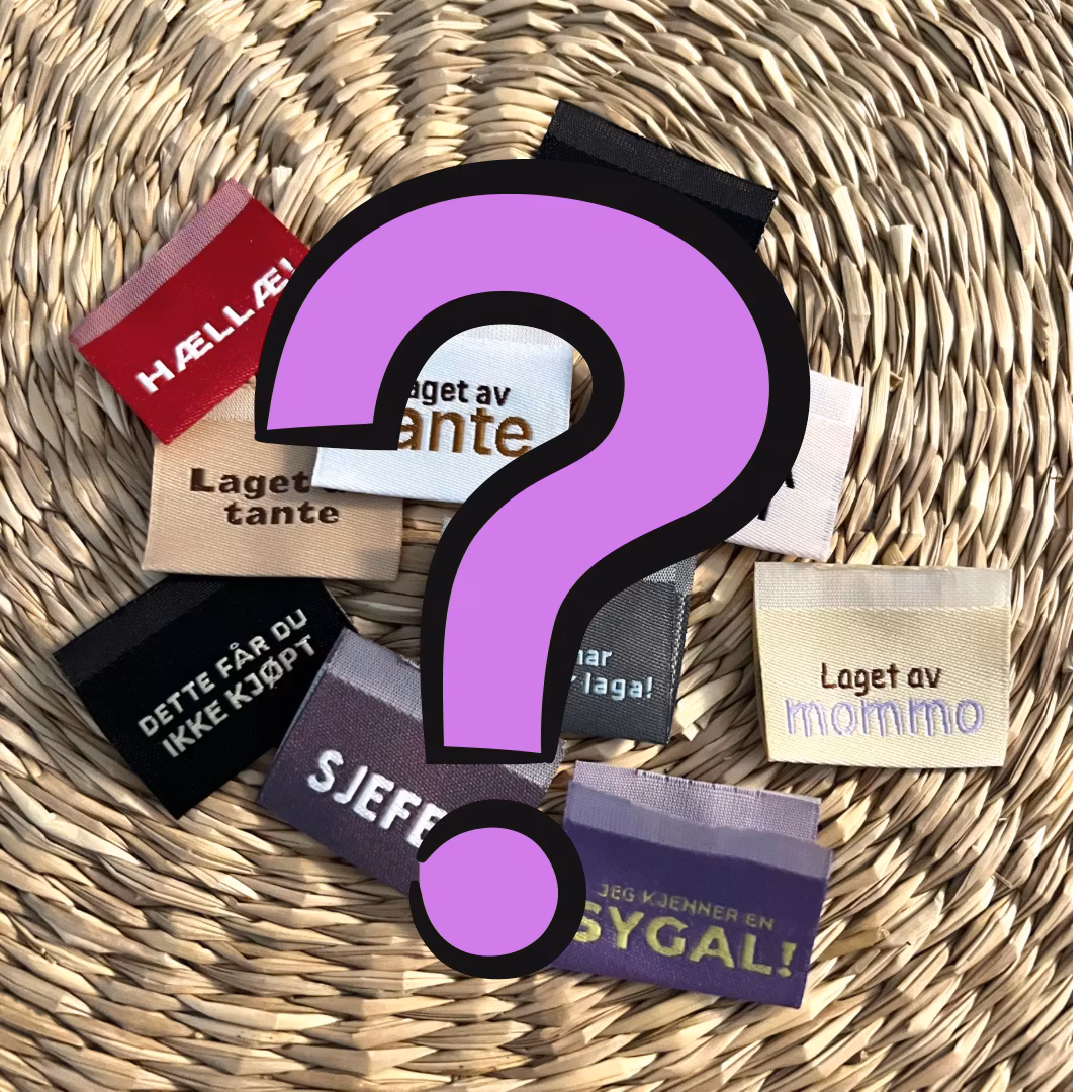 En pakke med 10 forskjellige vevede labels med norske tekster.