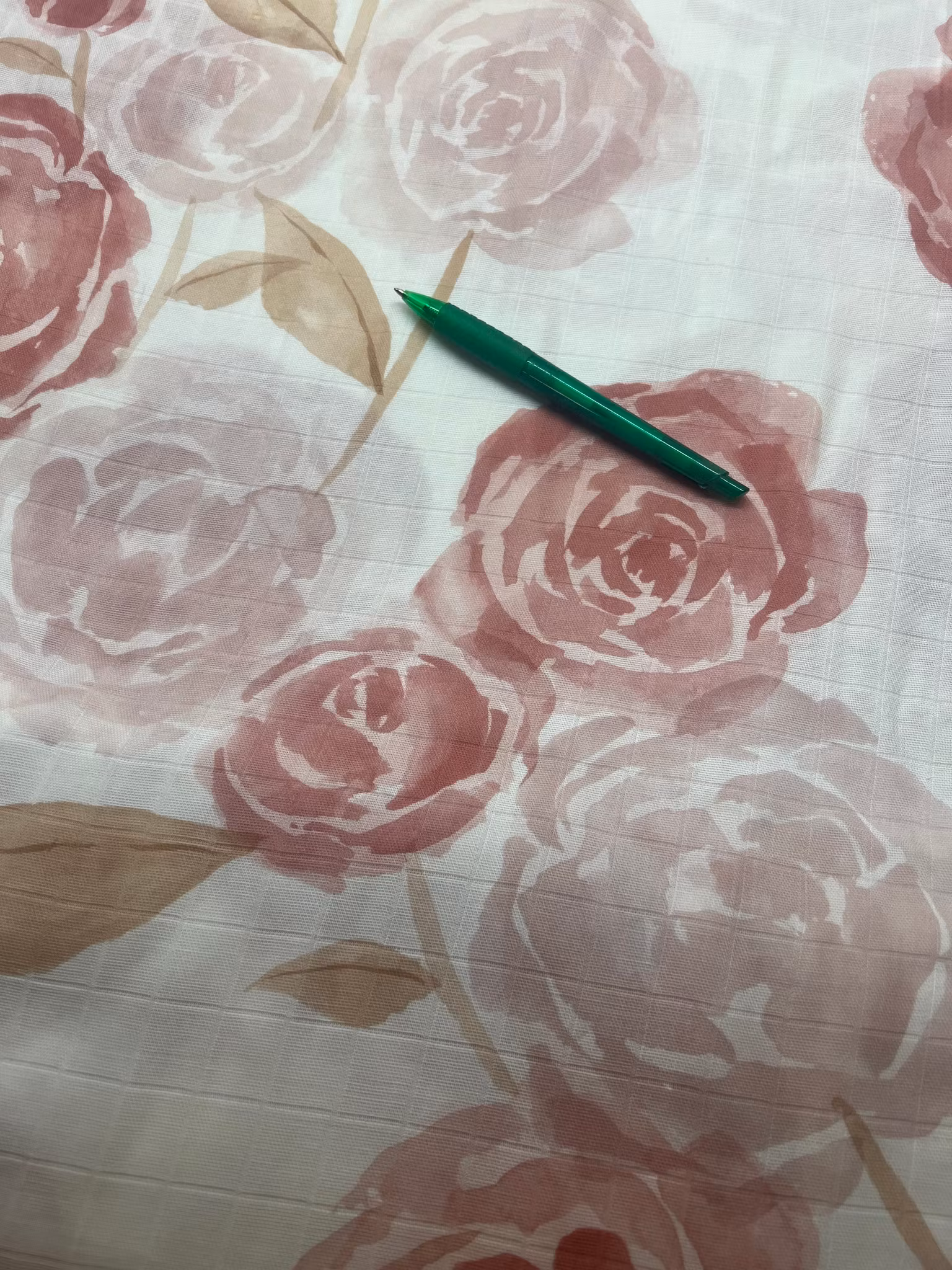 Da stoffet kan krympe litt er det anbefalt å vaske det før bruk
