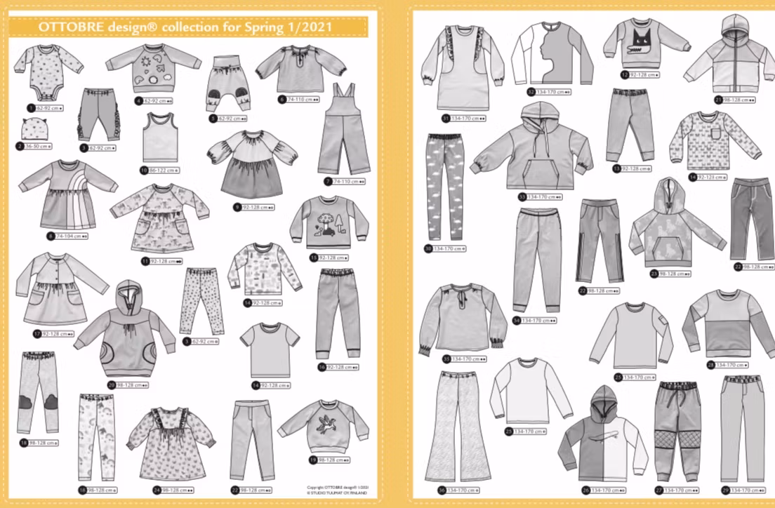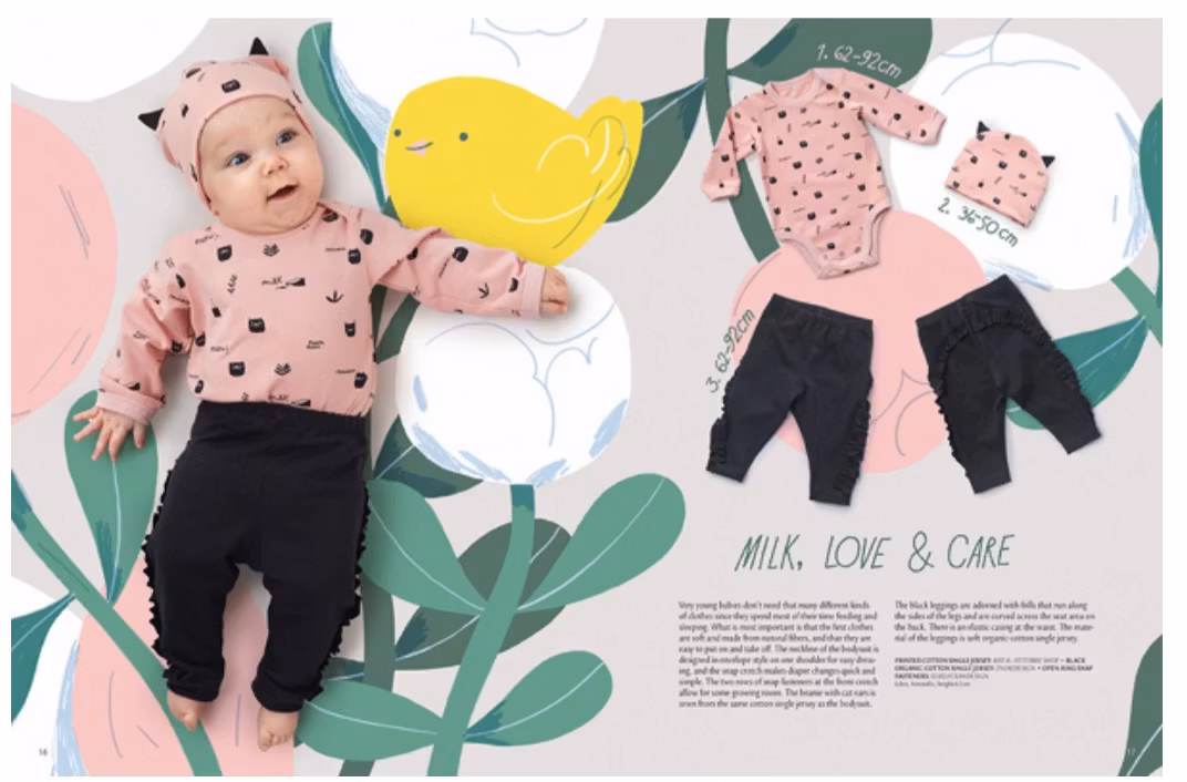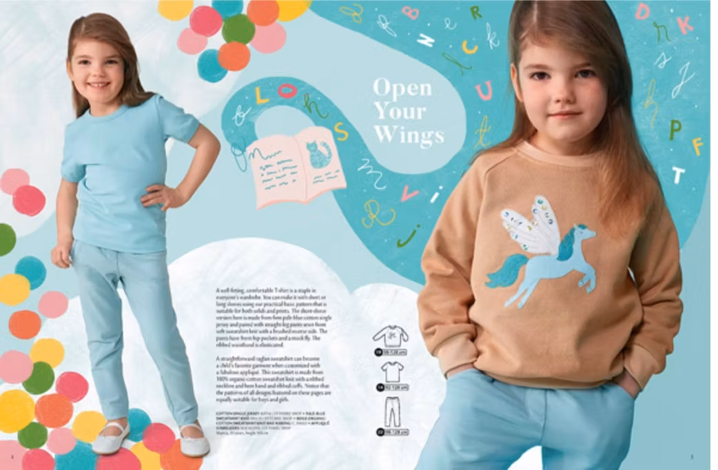 Et blad med mange mønster til små og større barn. Bladet er på engelsk, instruksjonene er på svensk