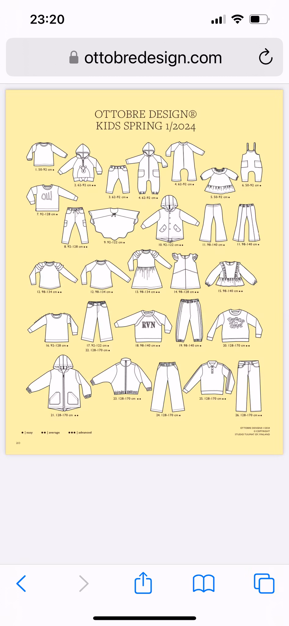 Mønsterblad med 27 mønster til barn i alder 50-170