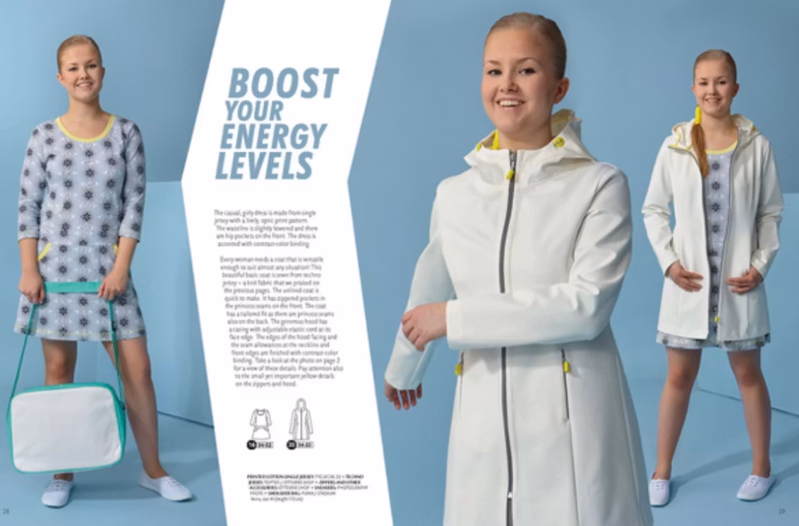 Inneholder mønster til dame i str 34-52 samt sømbeskrivelser. Beskrivelser er på engelsk, men man kan laste dem ned på svensk. Mønstrene er på papirark