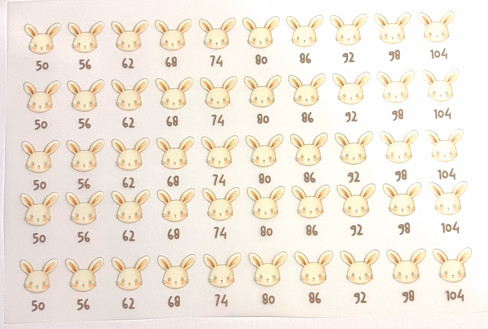 DTF størrelsesmerker kanin 50-104 5 av hver