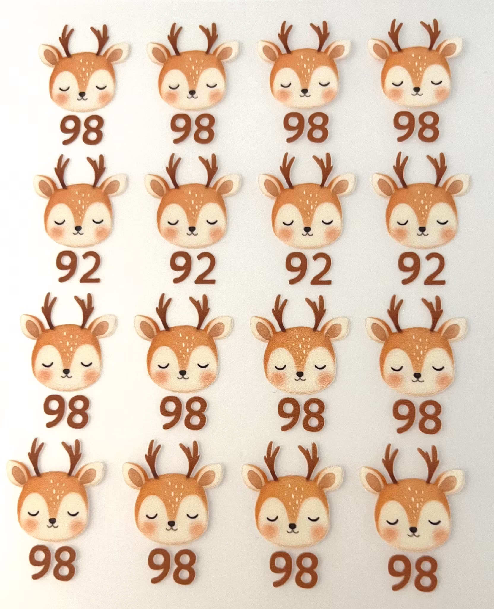 Ark med 16 merker , 12 i str 98 og 4 i str 92