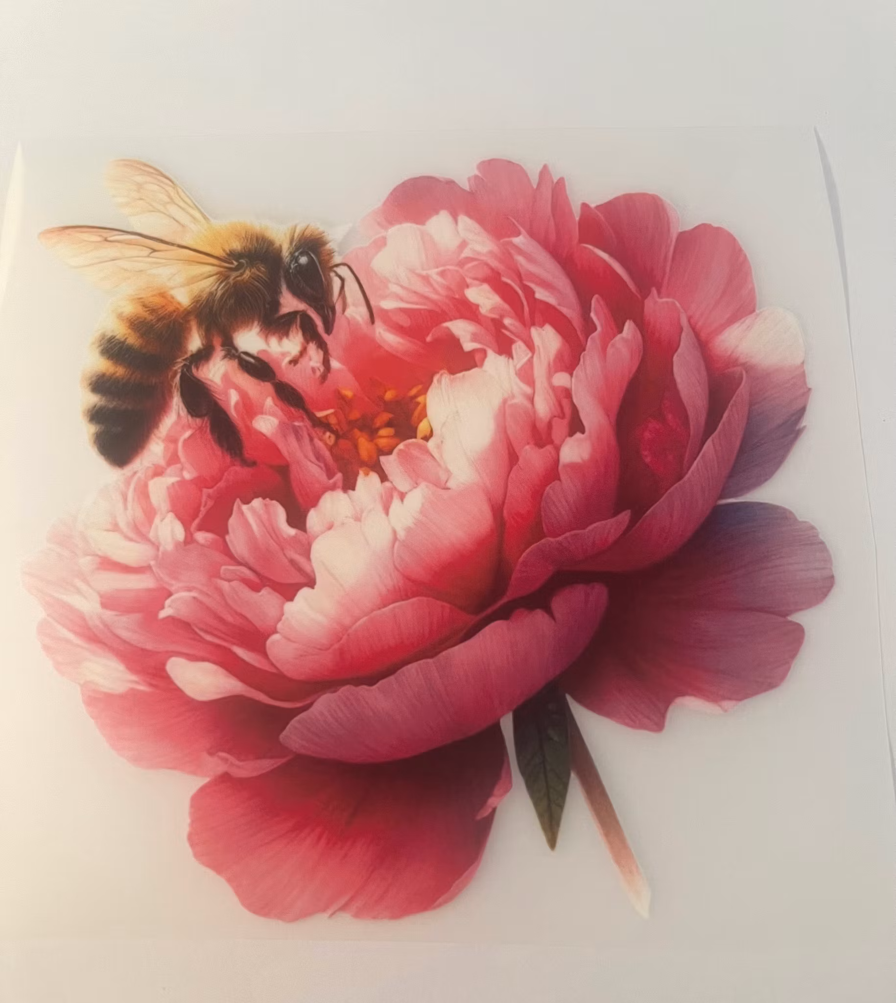 Legg bakepapir på toppen av motivet og stryk i ytterligere 5 sekunder.