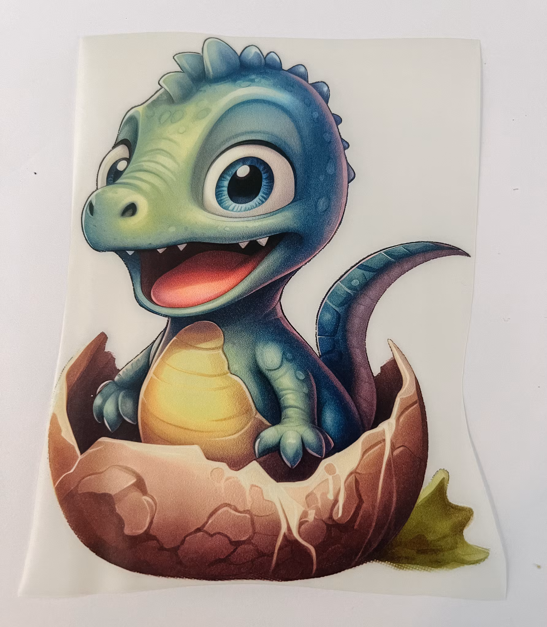 Strykemerke lillagrønn dinobaby i egg Liten