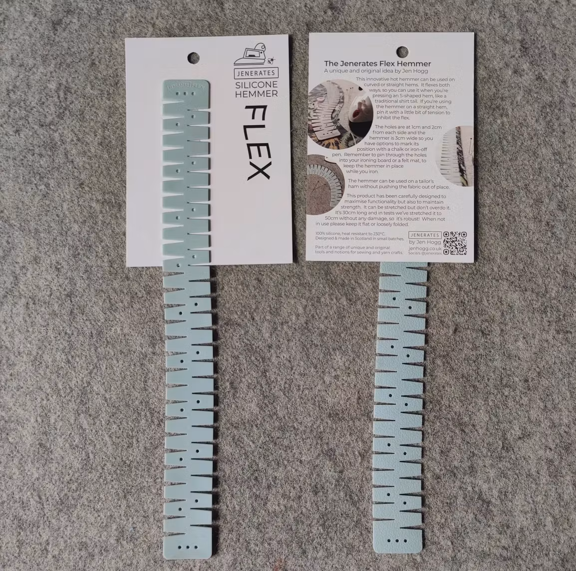 Jenerates Silicone Hemmer FLEX er et fantastisk verktøy for de som jobber med å sy kurvede kanter! Det gir deg muligheten til å jobbe med buer i begge retninger, som for eksempel skjortekanter, halsringer og andre buede sømmer. Hva som virkelig skiller det ut, er den fleksible designen som gjør det enkelt å bruke på både rette og buede kanter, samtidig som hullene gjør det lett å feste med nåler for å holde stoffet på plass under pressing.