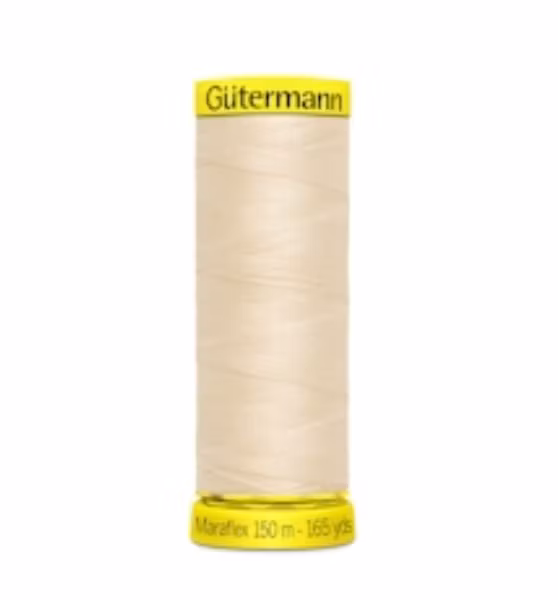 Maraflex er en elastisk tråd som kan brukes med rettsøm og likevel gi stretchy sømmer. Passer ypperlig å sy sport- og treningstøy, undertøy og andre plagg i elastiske stoffer.